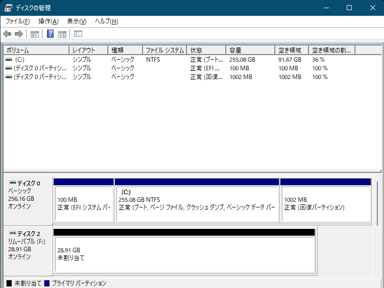 ひとつの空(未割り当て)の領域になったので、またフォーマットして再利用ができるぞ。